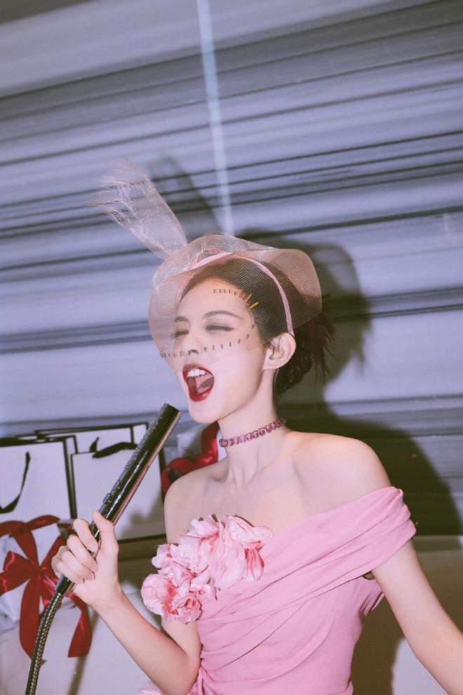 斜肩粉色礼服裙,上面点缀粉色立体花瓣作为装饰,搭配粉色头纱的李一桐,更让她的锁骨线,显得如梦如幻,像极了甜蜜芭比。
