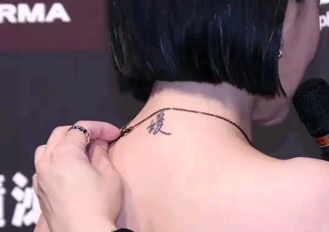 小S的脖颈处新添了一个刺青,是个“媛”字。小S大方承认,这个“媛”字乃她亲笔所书,还特意请好友范晓萱帮忙将其纹上。