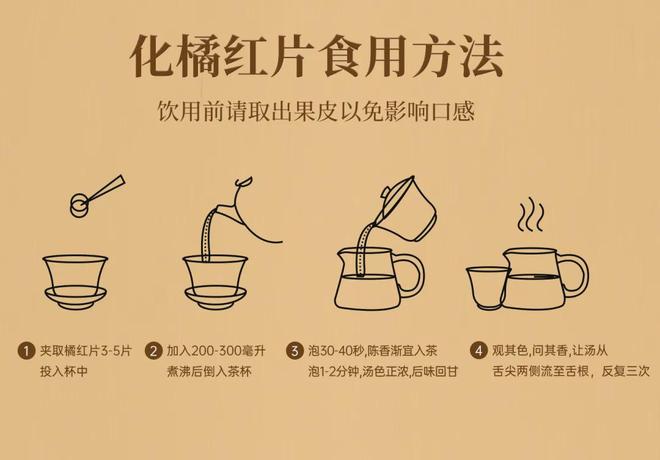 化橘红味道偏辛、微苦,初次饮用可能不习惯。可以加入少量冰糖或蜂蜜调和苦味,同时蜂蜜也能增强润肺效果。此外,还可以搭配几颗红枣或几片枸杞,既能改善口味,又能增加补气血、明目的功效。