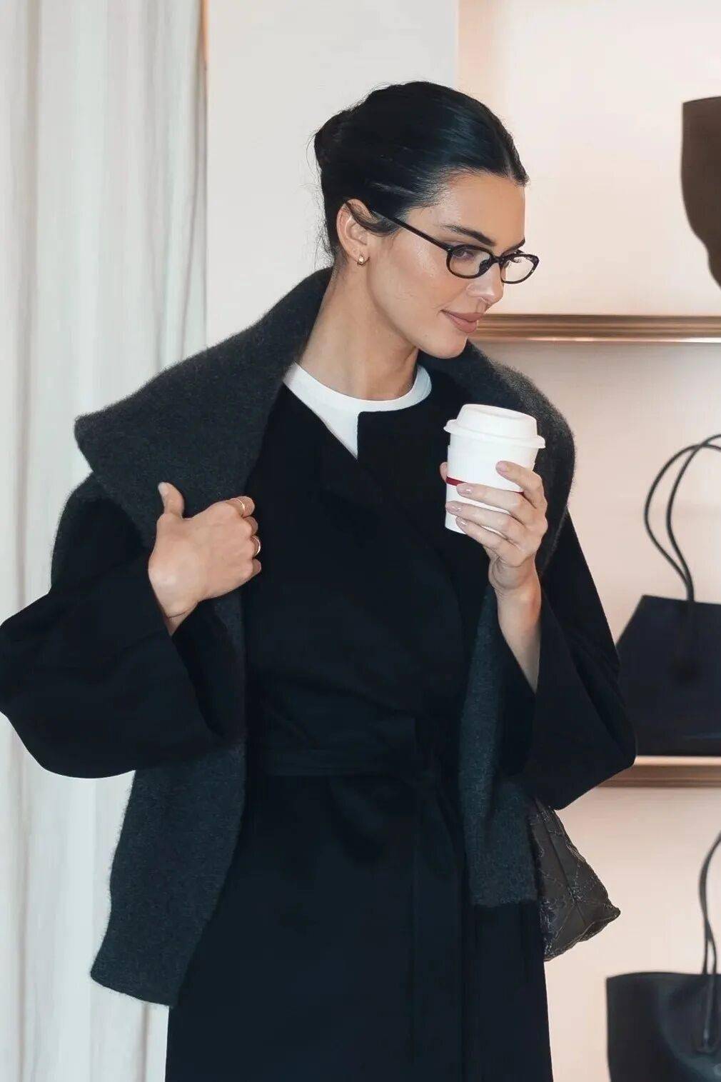 同样将这类眼镜演绎出彩的还有Kendall Jenner,但与Bella标志性的Vintage路线截然不同,Kendall则擅长选择极简的基础款来为高智气质留白,给人一种追求质感得体同时兼具冷冽的克制感。