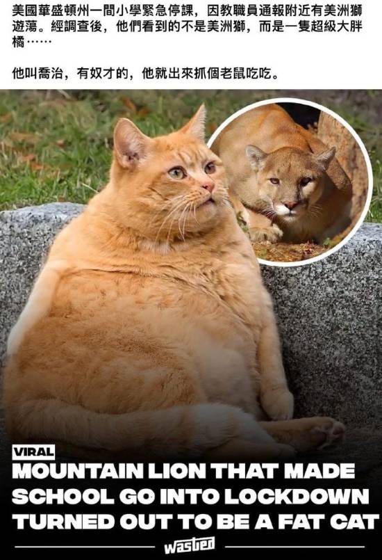 这起乌龙事件很快在社交媒体上引发热议,网友们纷纷调侃:“原来美洲狮的威胁级别和家猫一样”“这只橘猫应该被授予最佳演技奖”。学校方面表示,虽然事后看来有些滑稽,但在当时情况下,优先考虑师生安全是正确的决定。校方也借此机会向学生们普及了野生动物识别的知识,并强调在遇到潜在危险时保持警惕的重要性。
